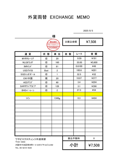 お客様から郵送して頂いた紙幣は内訳書をPDFで作成しLINEもしくはE-mailにて添付致します。